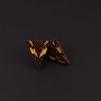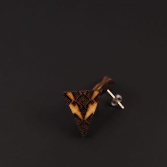 Wooden pendant blue with yellow elements with brass chain and is handmade with passion.