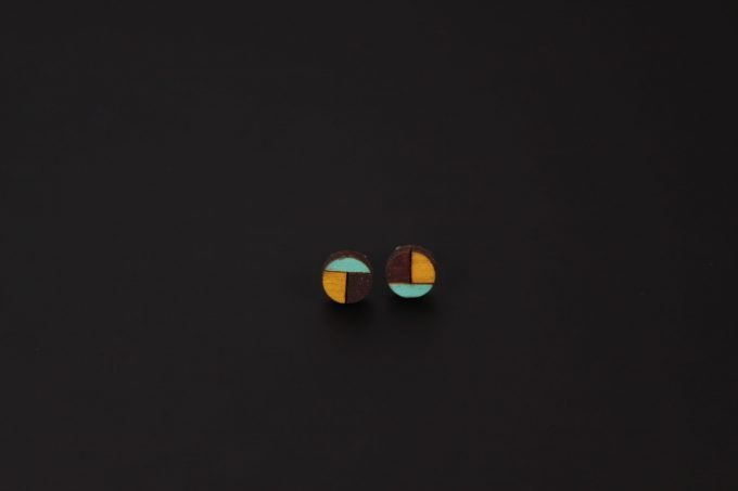 Wood-JewelleryThe wooden ear studs are hand painted and have a nickel free silver ear stud.