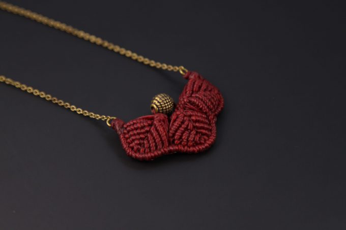 Macramee-JewelleryBrass elements were processed into the necklace.