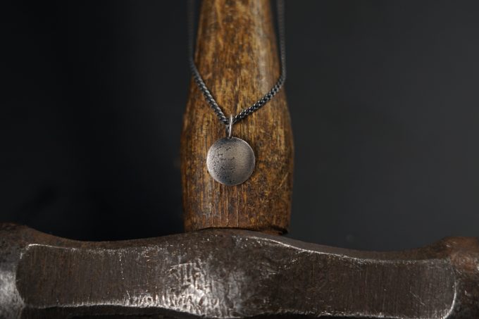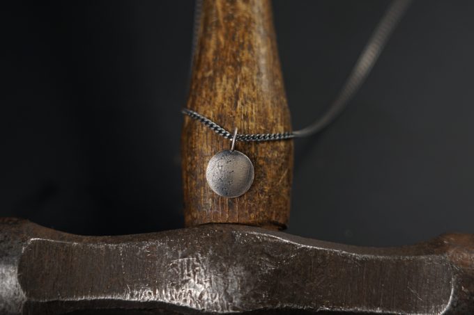 Metall-SchmuckDieser Mondanhänger besteht aus RJC-zertifiziertem umweltfreundlichen& hochwertig recycelten 925 Sterlingsilber und ist mit Feuer und Leidenschaft handgemacht hergestellt. Die Struktur erinnert an eine Mondlandschaft und ist eingraviert.