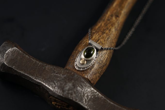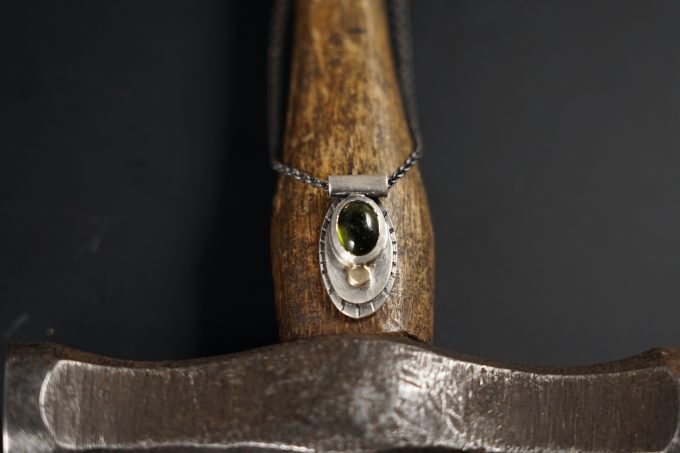 Metall-SchmuckDieser Turmalin-Anhänger besteht aus RJC-zertifiziertem umweltfreundlichen& hochwertig recycelten 585 Gelbgold (Goldblättchen) sowie 925 Sterlingsilber und ist mit Feuer und Leidenschaft handgemacht hergestellt. Der Turmalin ist außerdem ökofair gewonnen worden. Die Linien welche die Sonnenstrahlen symbolisieren habe ich unter dem Mikroskop handgraviert. Eine weitere Form symbolisiert die Mondsichel.